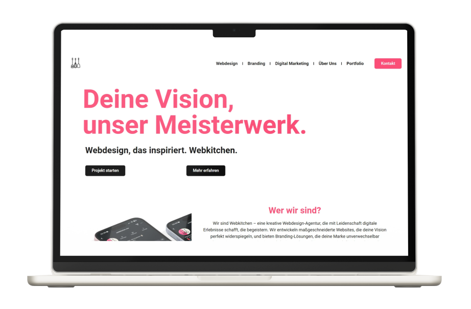 Wir sind Webkitchen – eine kreative Webdesign-Agentur, die mit Leidenschaft digitale Erlebnisse schafft, die begeistern. Wir entwickeln maßgeschneiderte Websites, die deine Vision perfekt widerspiegeln, und bieten Branding-Lösungen, die deine Marke unverwechselbar machen. Mit unserer Expertise im Webdesign und Branding sorgen wir dafür, dass dein Online-Auftritt nachhaltig Eindruck hinterlässt.